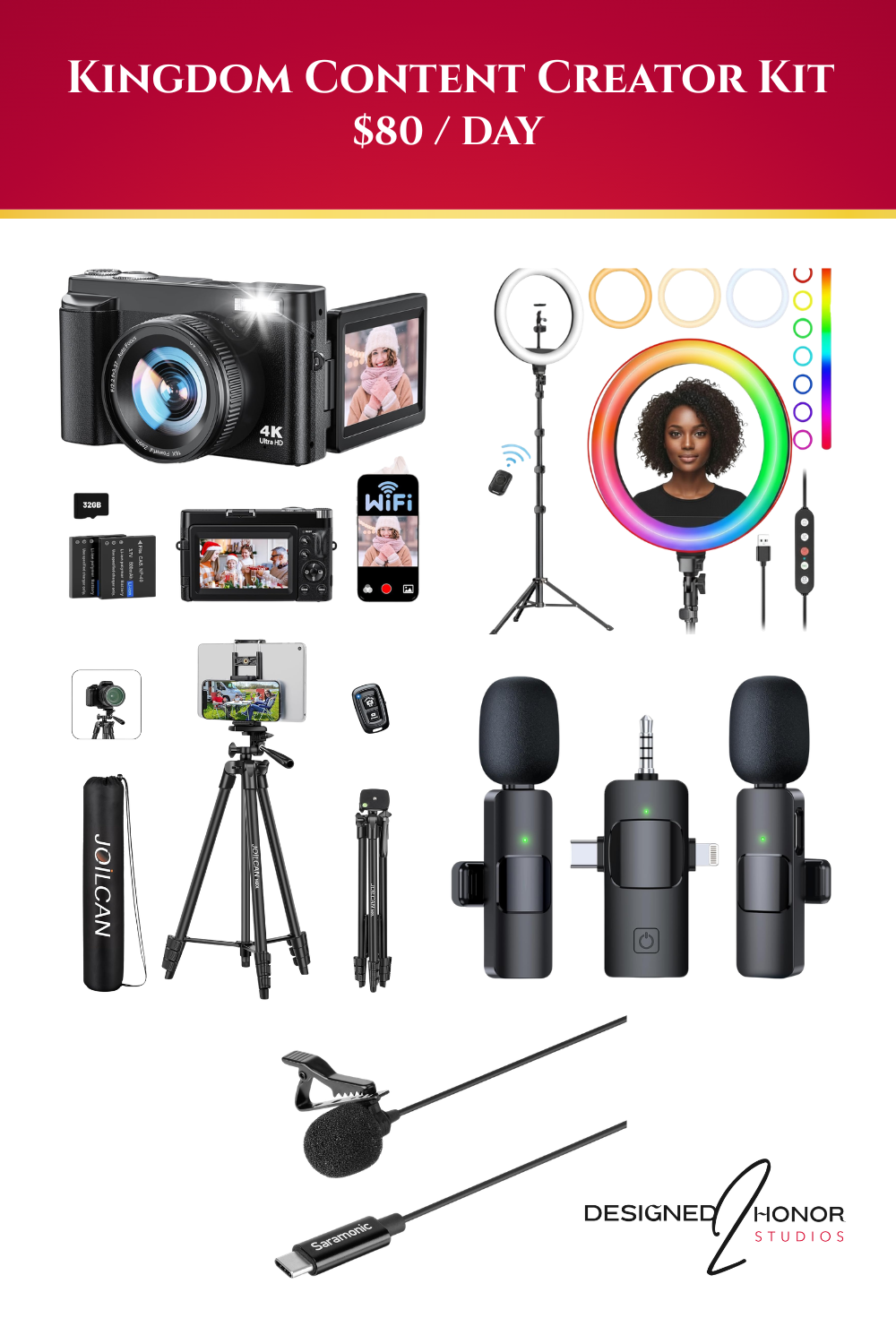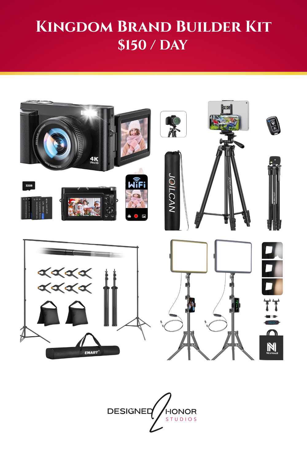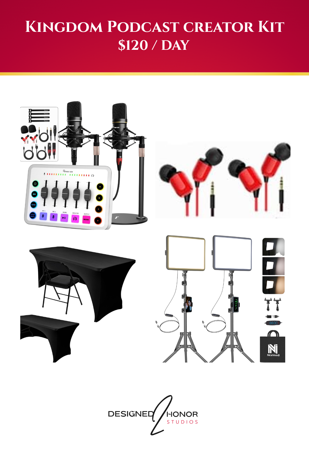 Whether you're filming a sermon, launching a podcast, or building your brand, Designed2Honor Studios provides high-quality, affordable creative equipment—without the stress of buying it all yourself.